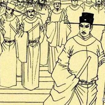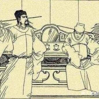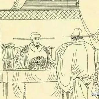 宋高宗朝见群臣商谈国政,负责谏议的官员董门郑重其事的进谏。